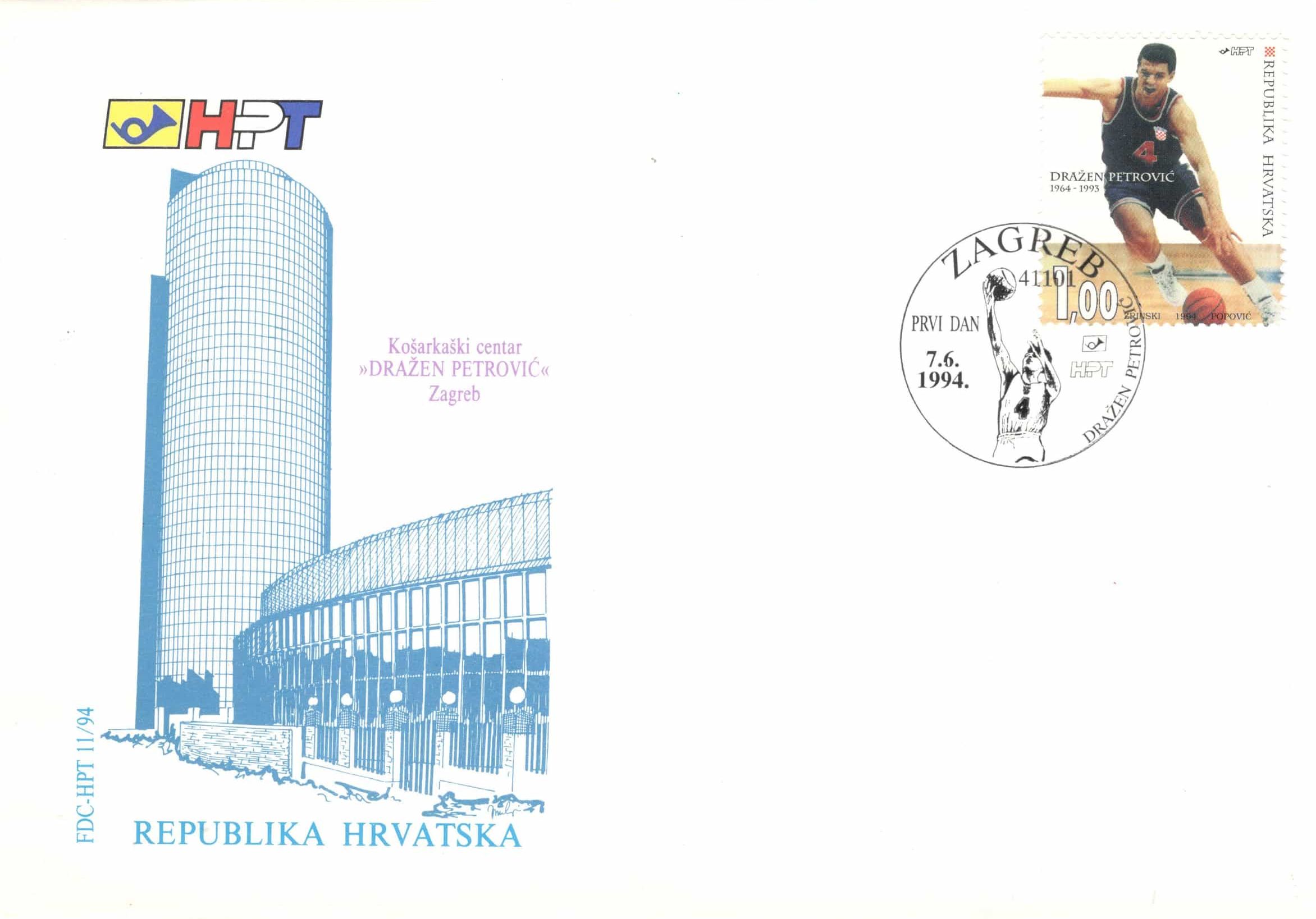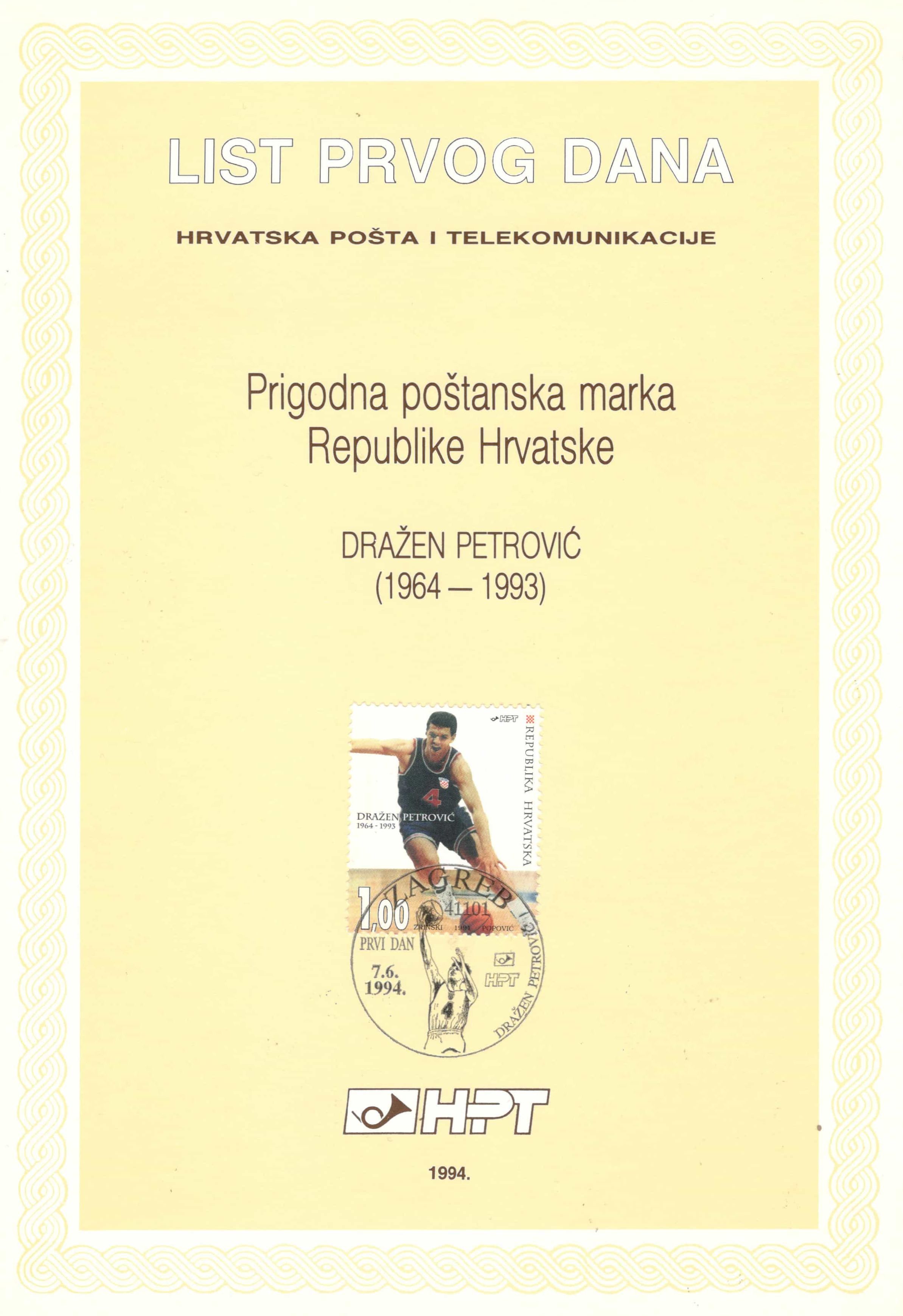 1. U povodu prve obljetnice tragične smrti u automobilskoj nesreći 7. lipnja 1993. godine, Hrvatska pošta i telekomunikacije izdale su poštansku marku posvećenu Draženu Petroviću, uz prigodnu omotnicu prvog dana (FDC–11–94) i list prvog dana.